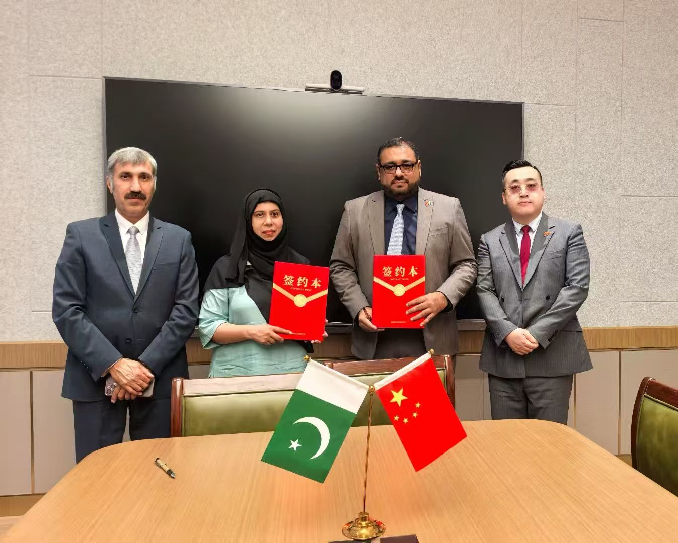 当日,巴基斯坦多所大学代表及学生代表共20余人出席了会议。在大使馆庄重的氛围中,双方围绕国际教育合作展开了深入交流与探讨,就学生交换、院校合作、职教出海等多个项目达成了共识,并成功签署合作协议。